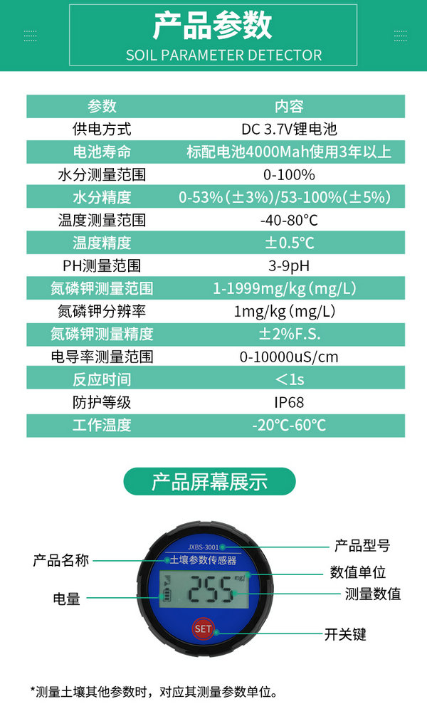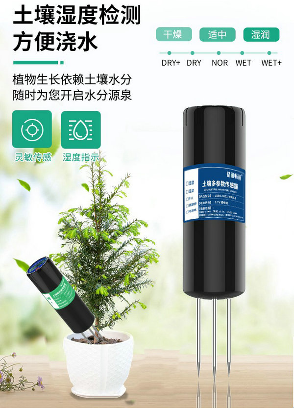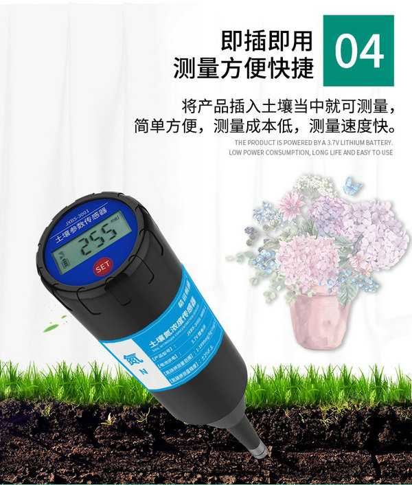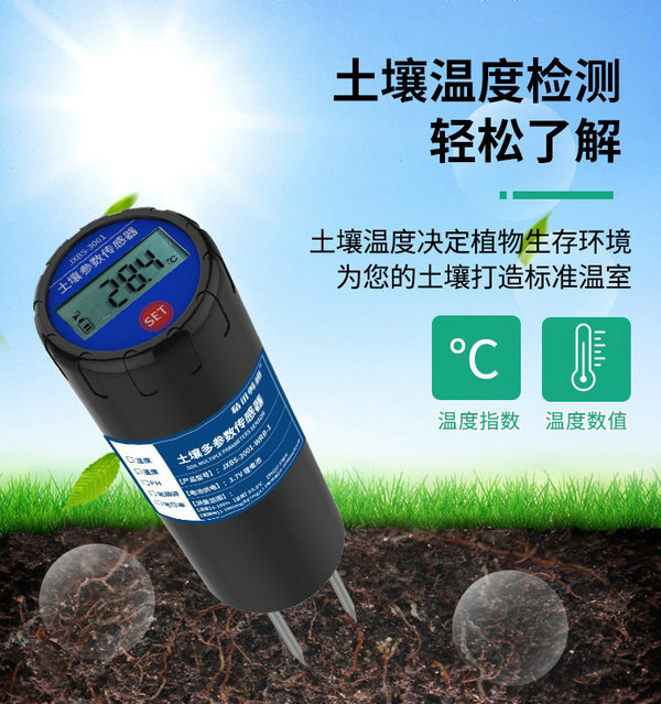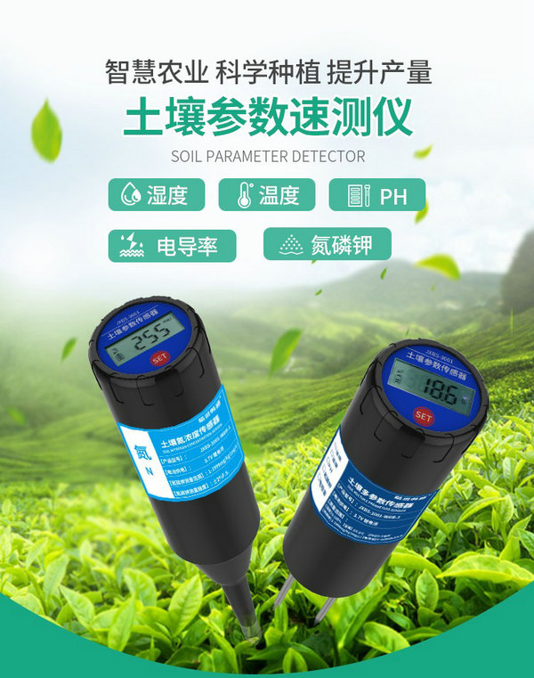 土壤参数速测仪可以监测土壤温湿度、PH、氮磷钾、电导率等参数,高灵敏度、低功耗、高清大屏,读数方便,适用于多种园艺,种植场所的土壤测试工作。