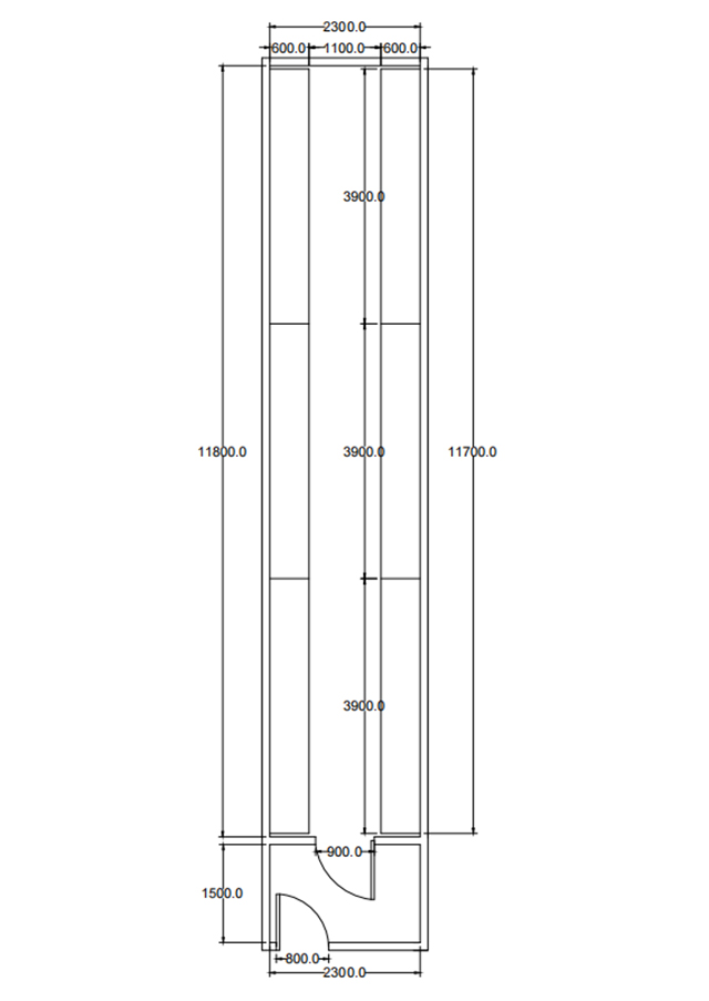 栽培区内设施:排栽培架11700(L)*600(W)*2800(H)mm,每排4层。材质铝合金货架中间布置110cm宽的检修巷道。(可进一步优化货架摆置布局)