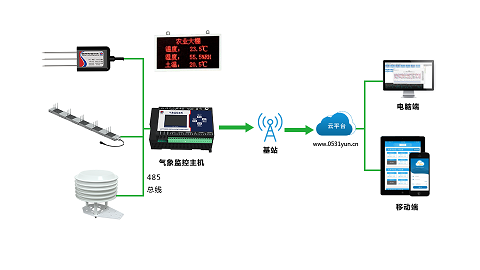 该方案由气象监控主机、土壤温湿度电导率、土壤氮磷钾、空气温湿度、光照度和二氧化碳浓度组成,可以实时监测温室大棚内的空气温湿度、土壤温湿度、土壤电导率、二氧化碳浓度、光照强度,并实时上传至云平台。