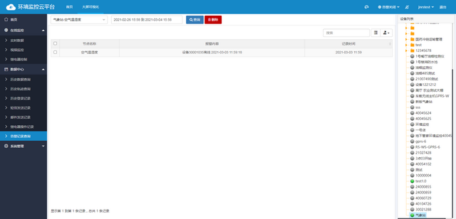 当监测到任何数值超限时,系统会时间给添加在云平台上的管理员手机号码以电话、短信的方式发送告警信息,同时云平台还会平台信息告警、字体颜色由绿变红或邮件告警的方式通知数值超限。