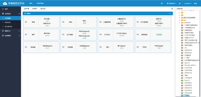 直观展示该地区的全部监测点位,右侧列表可快速查询所需站点。将鼠标移动到某站点上即可查看该点的名称,单击某一站点可查看实时监测数据、站点基本信息、参数变化趋势等。